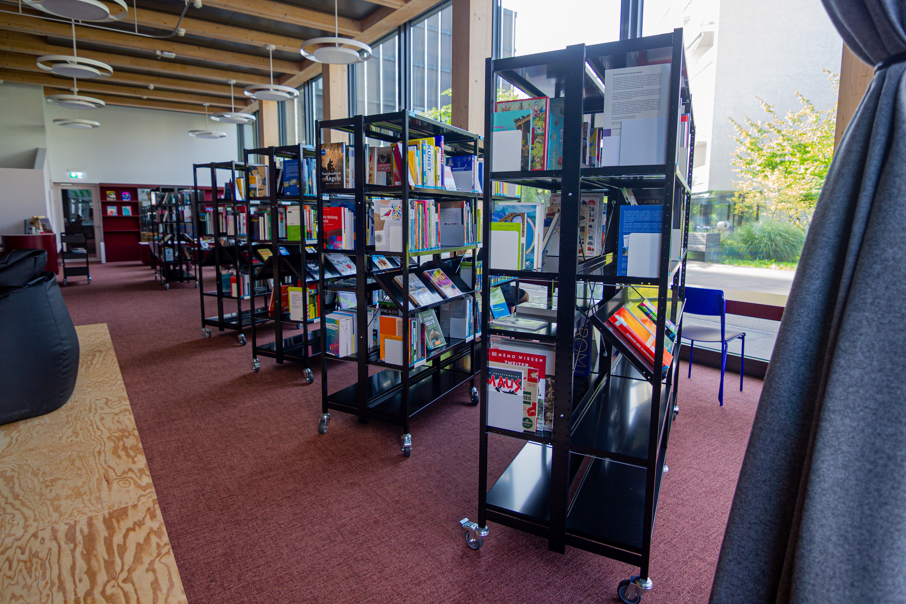 Die Mediothek ist während den Gebäudeöffnungszeiten von 07.00 bis 18.00 Uhr zugänglich, von 09.30 bis 12.15 Uhr ist sie bedient.