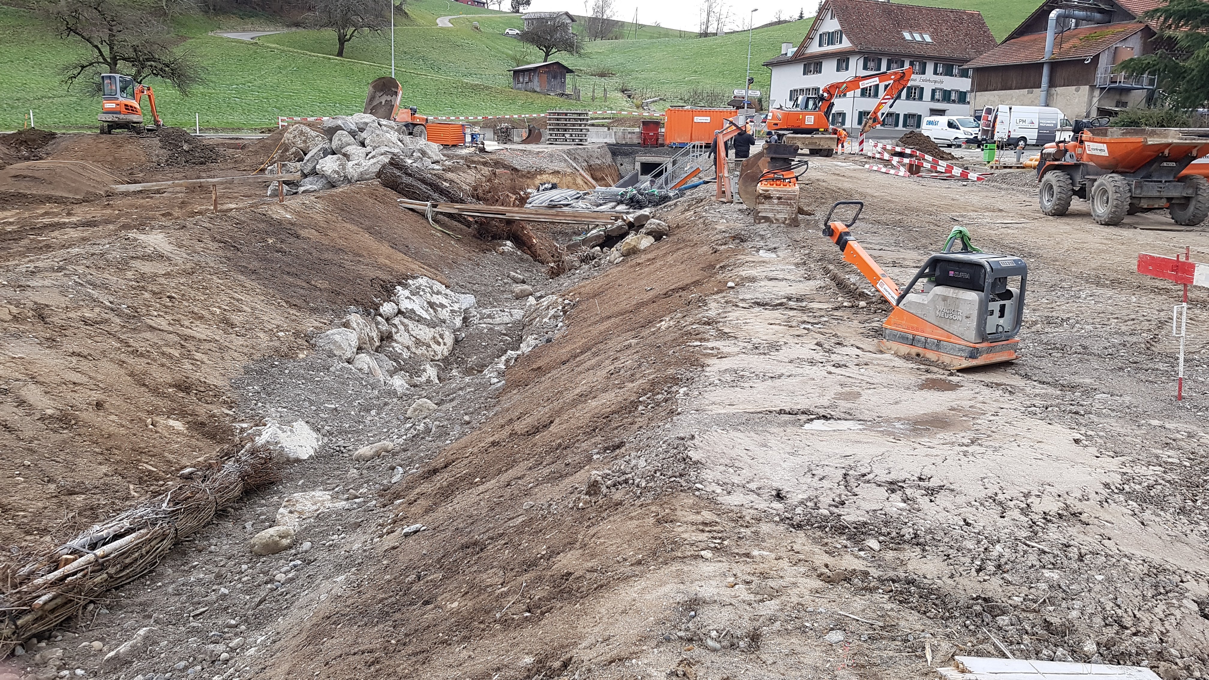 Seit Oktober 2019 werden die Bauarbeiten an der Hinterburgstrasse in Neuheim für die Erstellung der Bachdurchlässe, des Bachgerinnes, für diverse Werkleitungen sowie Vorarbeiten für den Strassenausbau ausgeführt. Dies, in einer ersten Phase bis Ende April 2020 und unter Vollsperrung für den gesamten Verkehr zwischen der Edlibachstrasse und der Baarerstrasse.