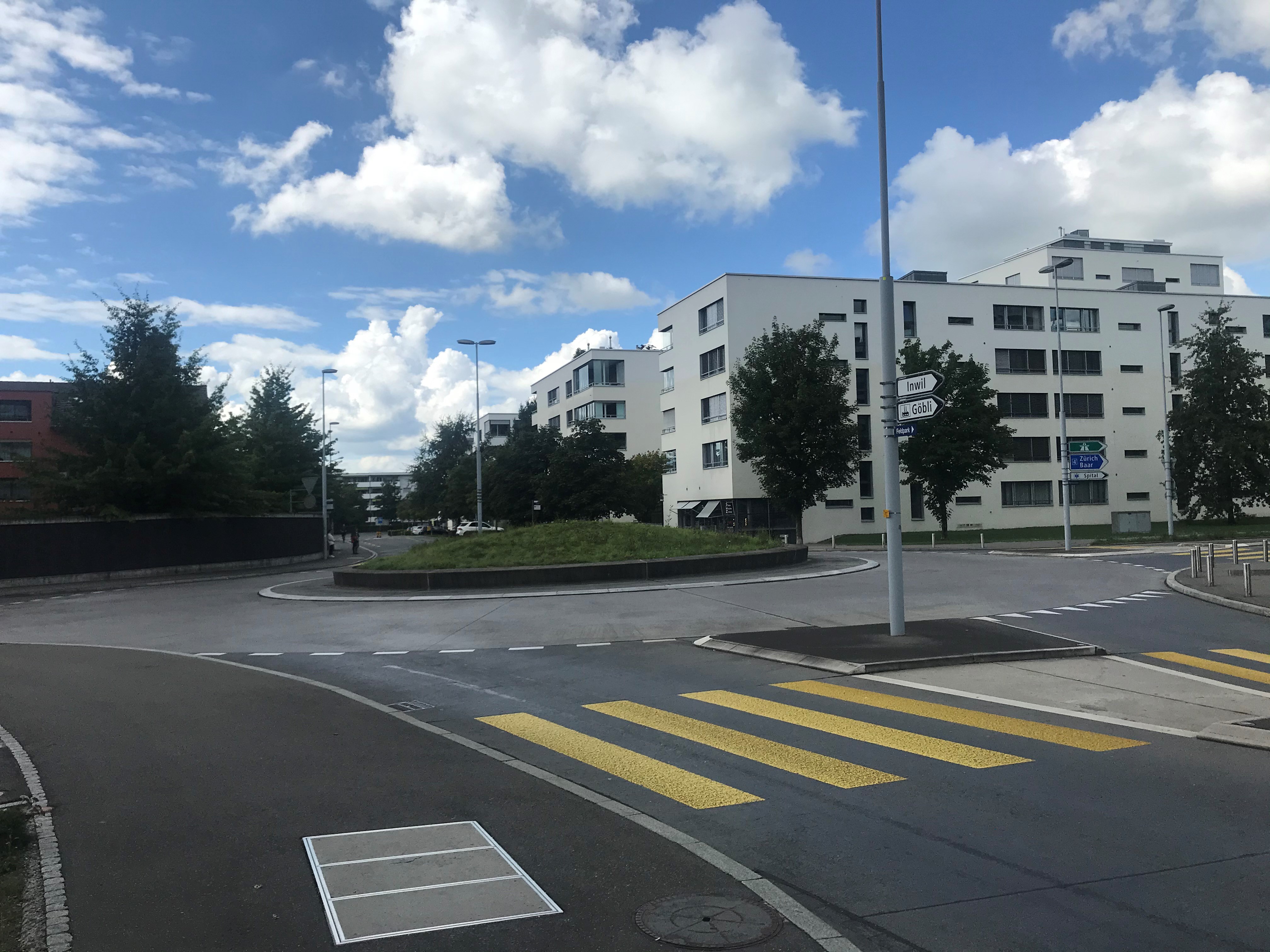 Aufnahme des Kreisels Feldstrasse in Zug aus Richtung Osten.