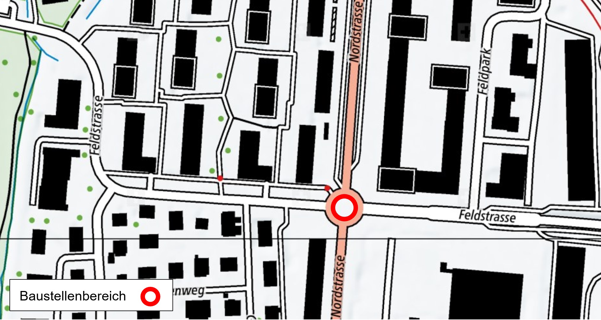 Situationsplan der Baustelle des Kreisels Feldstrasse in Zug.
